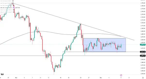 金价在周一早盘攀升至2640上方,2650/55是初步阻力,随后是趋势线所在的2670一线。值得注意的是,国家外汇管理局数据显示,中国央行的黄金储备在11月有所增加,此前央行连续6个月暂停增持黄金,这或许能提振黄金多头的信心。再往前的2023年至今年4月,央行曾连续18个月增持黄金储备。