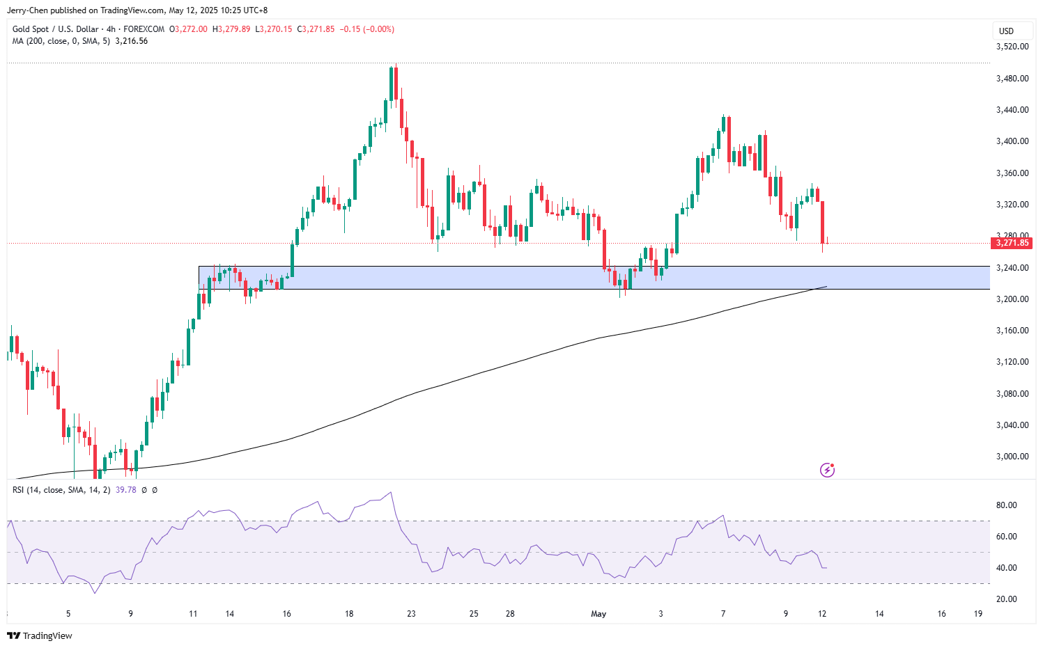 周末传来更重磅的消息,中美双方均确认在瑞士举行的贸易会谈达成重要共识,取得实质性进展,并将于周一发表联合声明。尽管两边都未公布细节和任何关税税率的调整,但这一突如其来的利好还是刺激美国三大股指期货全部高开,其中纳斯达克跳升近2%,黄金周一早盘遭遇重挫。