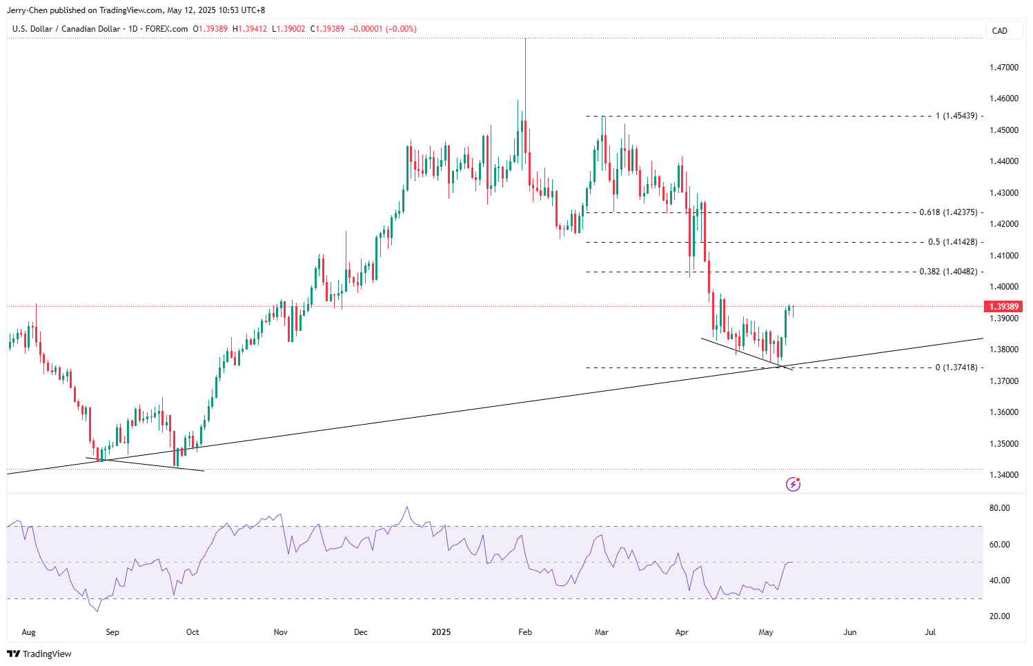 目前在小时级别存在超买迹象,短暂调整过后若能突破前高1.3980,将提升反弹延续的概率,上方进而关注1.4000-1.4150区域,其次是3月高点。下行方向,趋势线是关键的支撑参考。